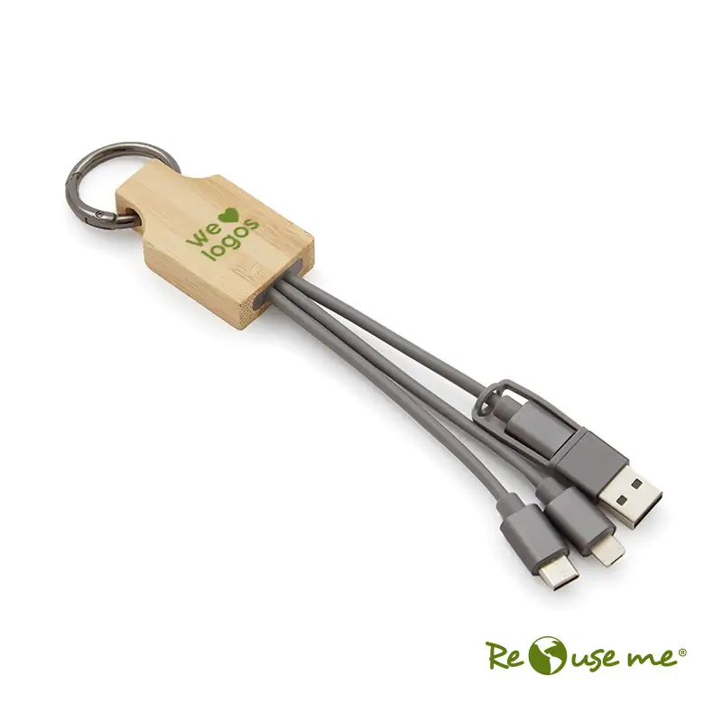 Es el accesorio perfecto para mantener tus dispositivos siempre cargados y listos para usar. Cuenta con un accesorio rectangular de bamboo de donde salen los cables y un gancho de aluminio en tono con los cables.